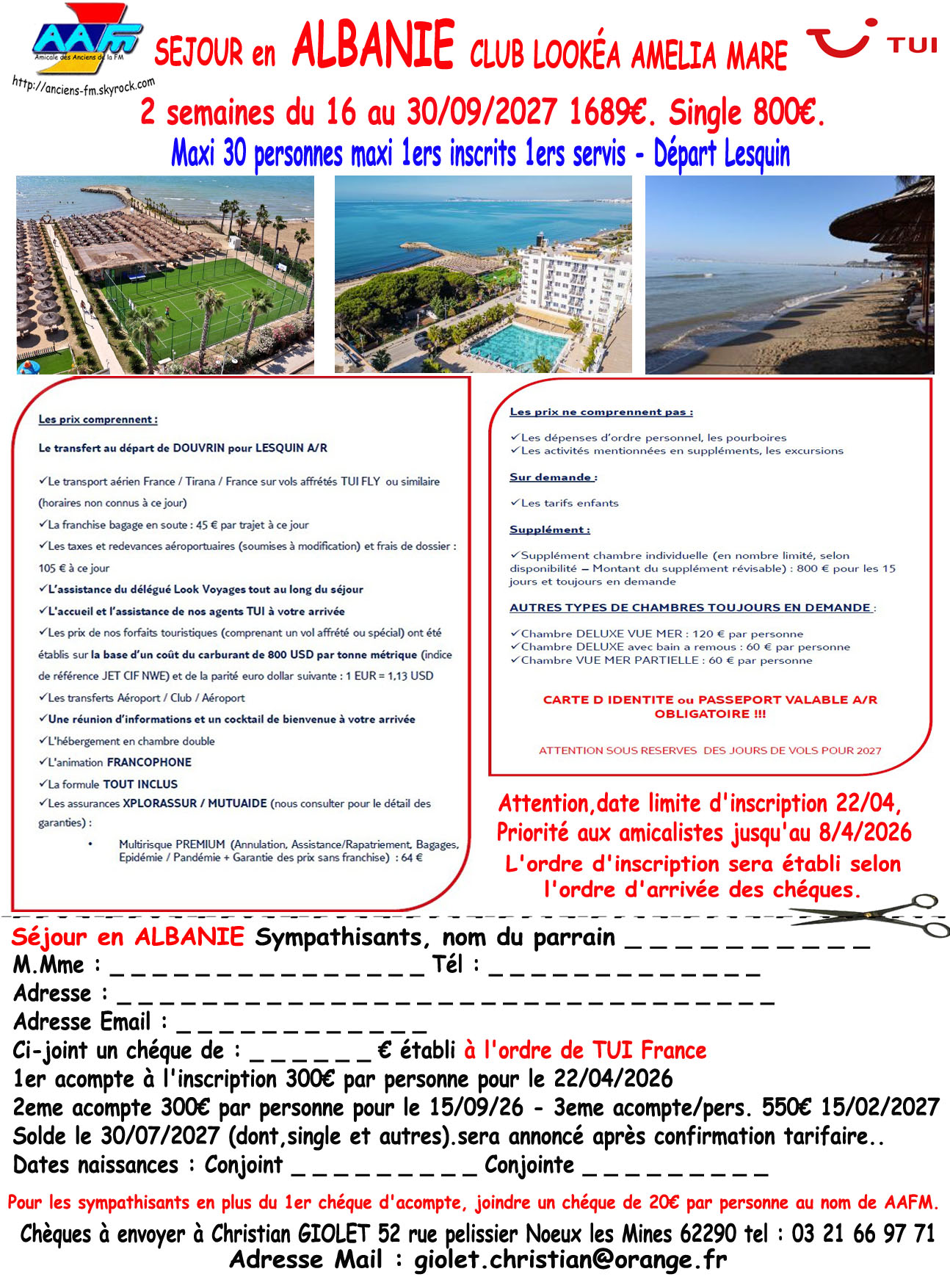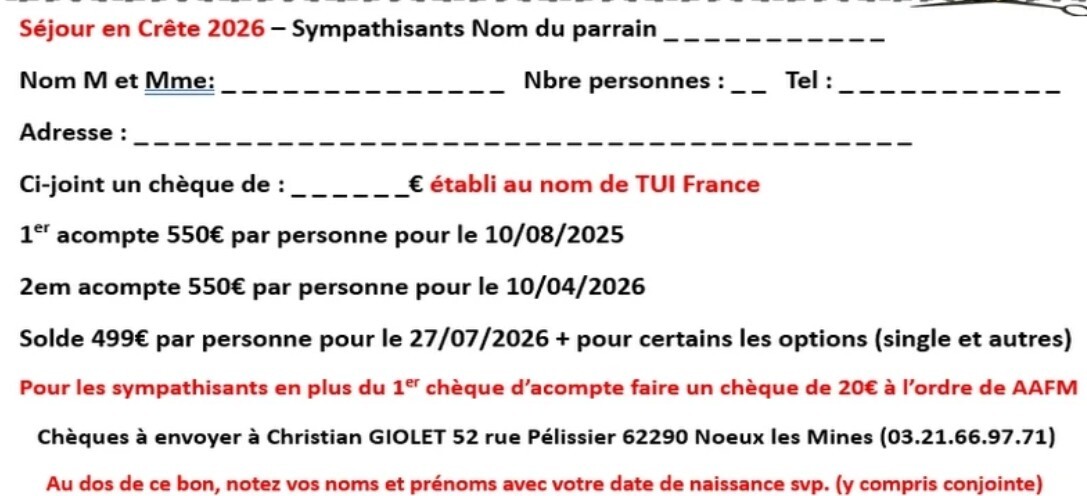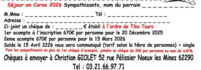 ⚠️ ATTENTION le chéque est à faire au nom de Tibo Tours et non TUI France
