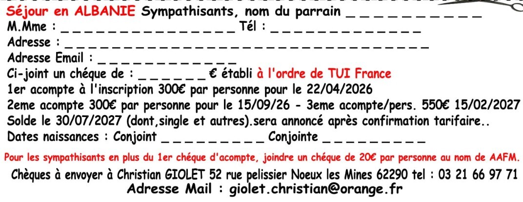 SYMPATHISANTS : CONDITIONS D'INSCRIPTION VOYAGES