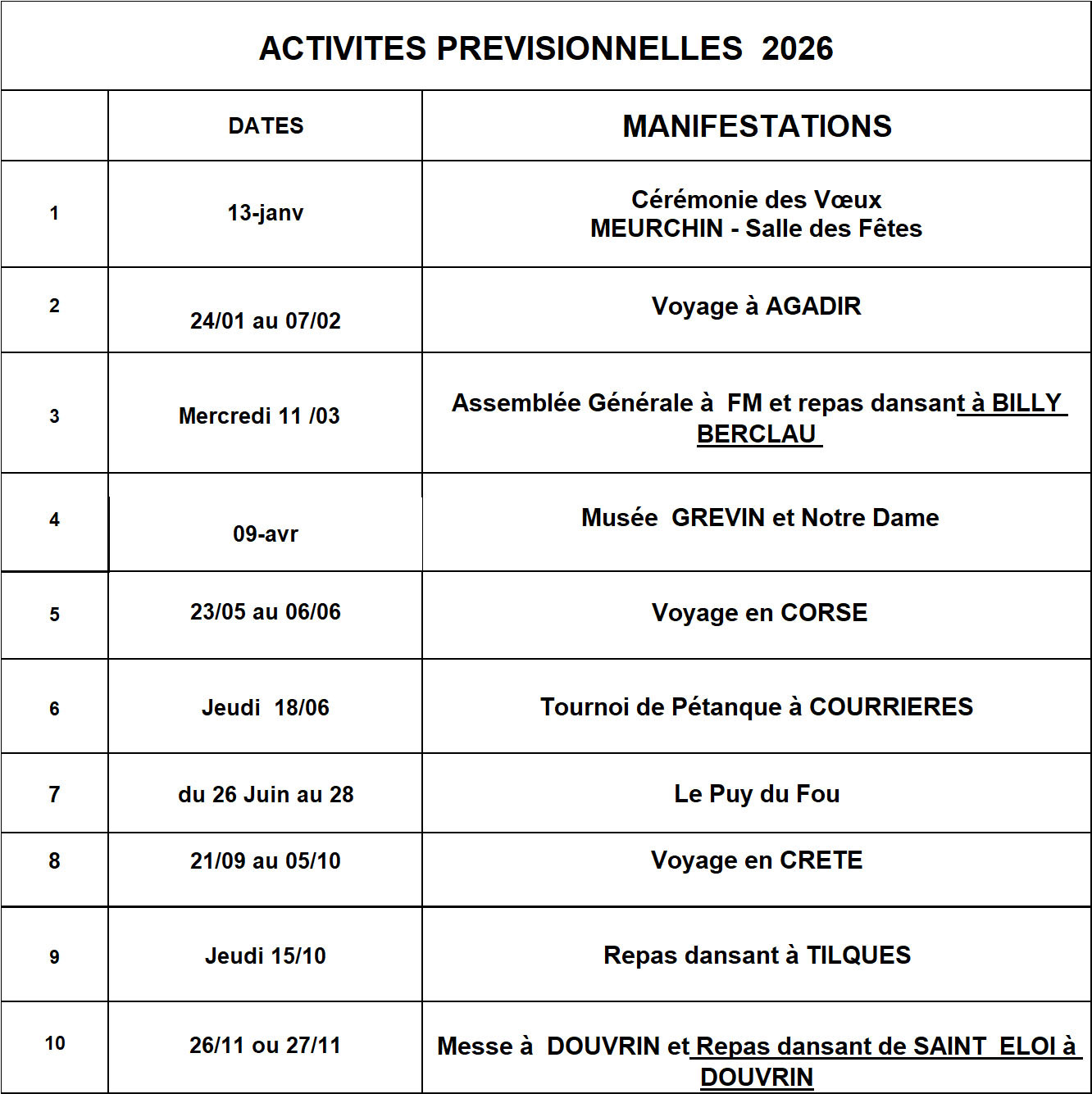 Nos activités prévisionnelles pour 2026 Cliquez ici